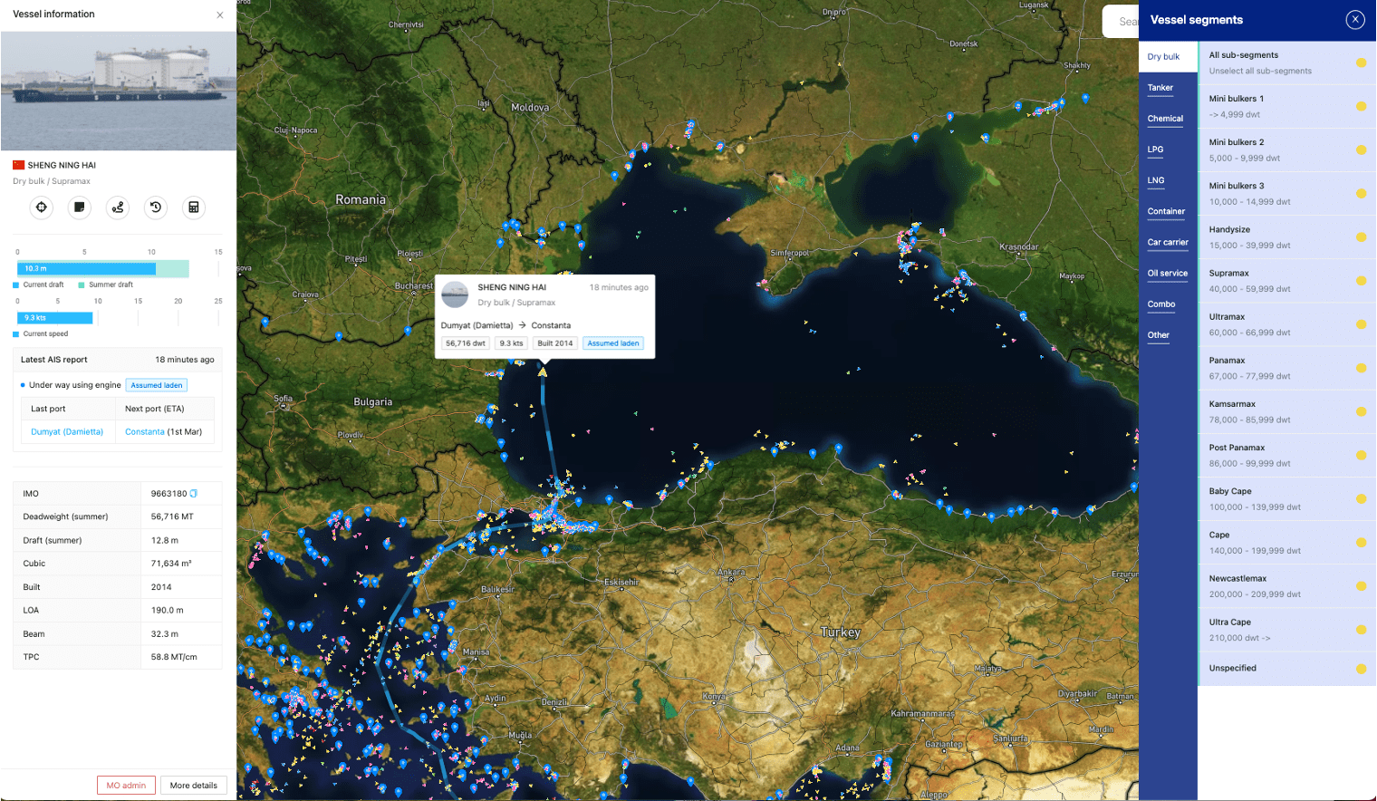 Stay up to date on the situation in the Black Sea by creating a free user account in ShipAtlas.