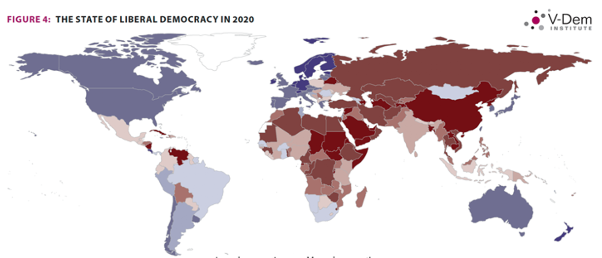 In the last Breakfast Club Meeting Ulf Sverdrup talked about the decline in the democracy index. Today it is at a level similar to 1990. "Electoral autocracy" has become the most common type of regime.