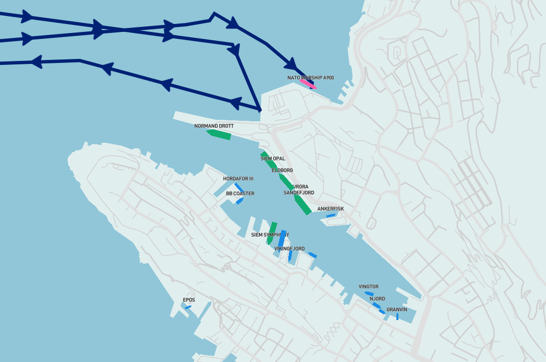 If you're walking around Bergen Harbor these days, you might spot an unusual sight among the typical ships. Four days ago, the Dutch support vessel HNLMS Mercuur (IMO: 4601761) docked alongside a submarine as part of the military exercise 'Arctic Dolphin 2025.'