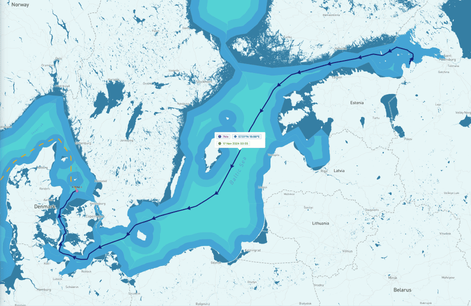 After the breach, investigators quickly focused on the Yi Peng 3, which left the Russian port of Ust-Luga on November 15.