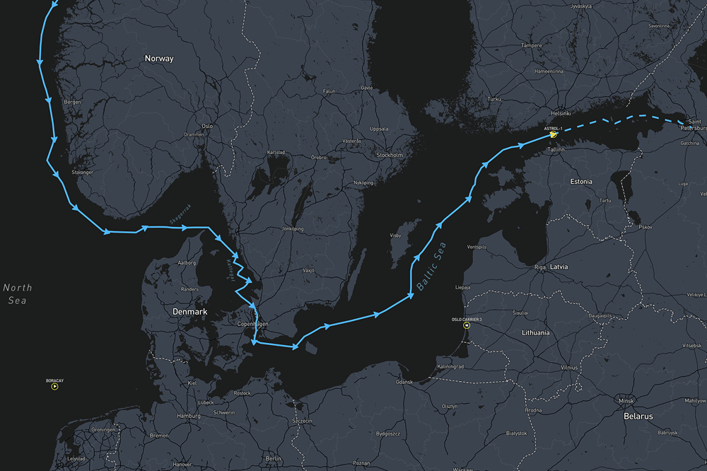 The vessels under investigation include Astrol 1 (IMO 9906544), a coastal freighter flagged in Russia; Pushpa, previously known as Boracay (IMO 9332810), flagged in Malawi but linked to Russia’s shadow fleet; and Oslo Carrier 3 (IMO 9366146), reportedly staffed by a Russian crew.