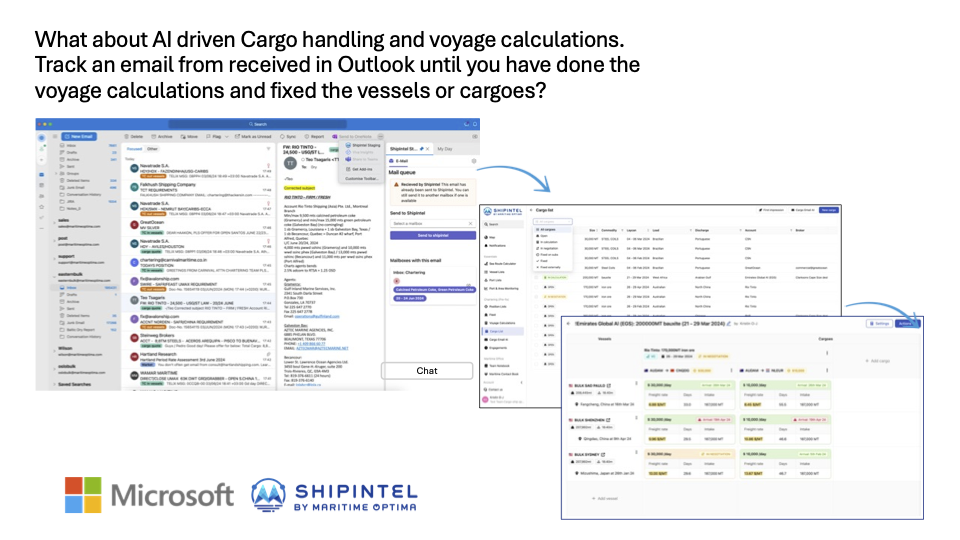 What about AI driven Cargo handling and voyage calculations? Track an email from received in Outlook until you have done the voyage calculations and fixed the vessels or cargoes.