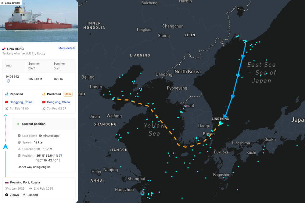 The Ling Hong (IMO: 9408542), a 17-year-old Aframax previously named Suvretta, berthed at Kozmino Port on Saturday, according to ship-tracking data from ShipAtlas by Maritime Optima. The vessel, which is not subject to sanctions, loaded approximately 670,000 barrels of ESPO crude.