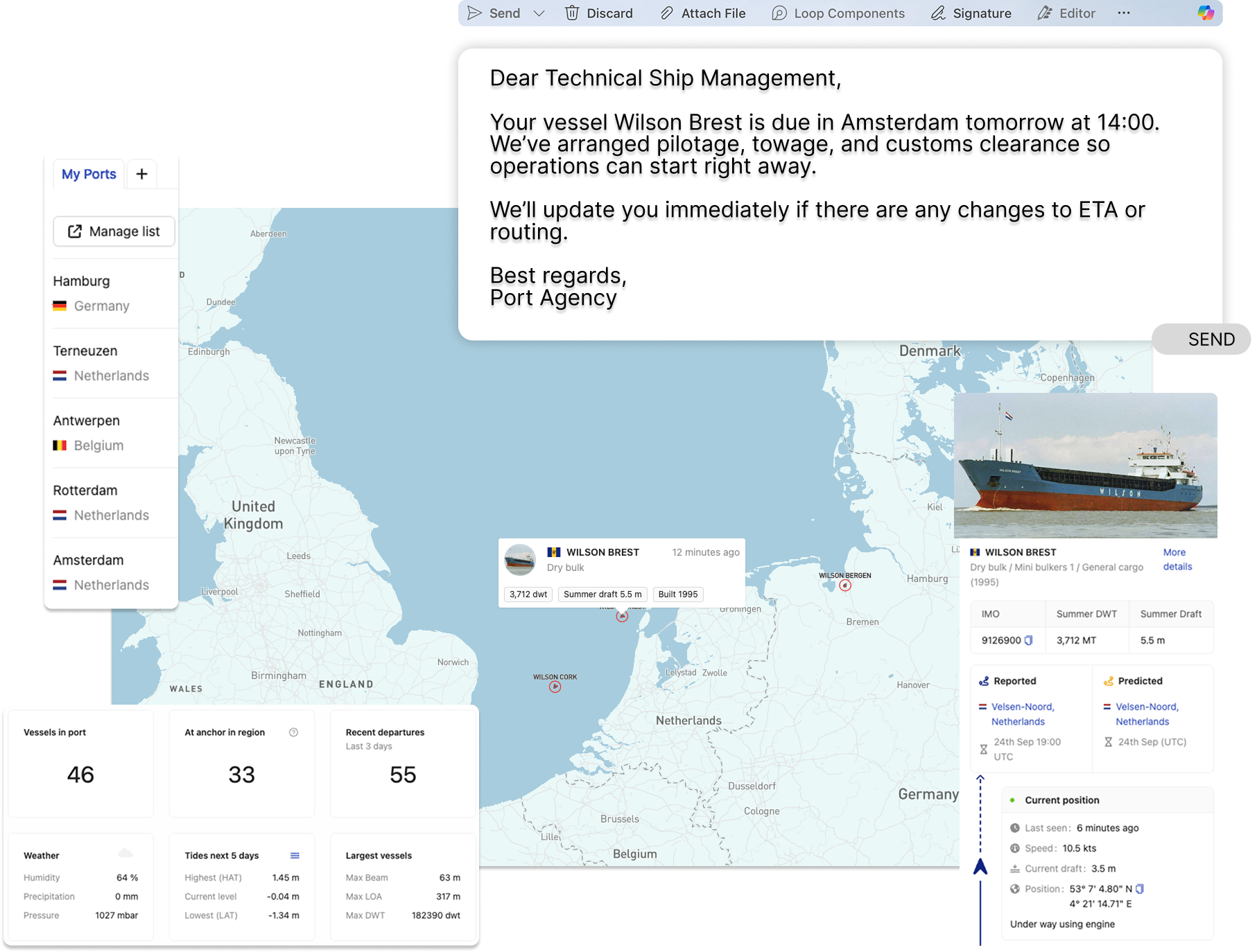 With your internal notes, files, and photos attached to vessels and ports, you can reach out at the right moment with proposals tailored to each potential client.